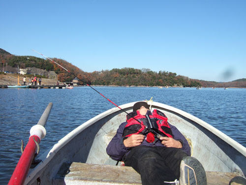 あまりにも釣れない。くやしいな~。トイレに行くついでに貸しボート屋のおばちゃんにコツを教えてもらった。