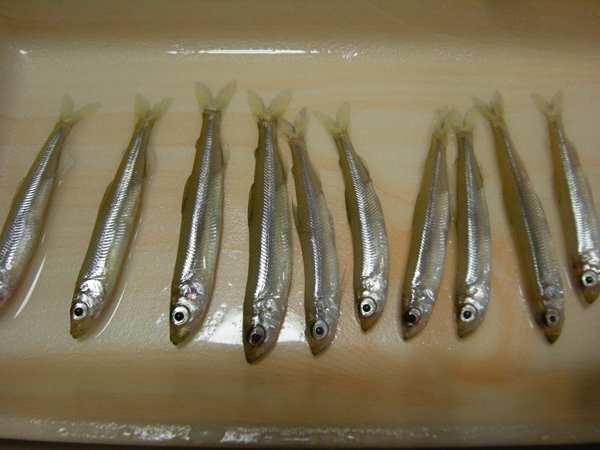 たった2匹ごときにこちらも料理をする気にもならず、帰ったらM3とM4のおみやげだーと思いましたが、料理していただけるというお言葉に甘え、うちの2匹もいっしょにてんぷらしてもらいました。一人2匹の配分でしたが、食べられるありがたさをしみじみとかみしめたわかさぎの味でした。美味しかったです。