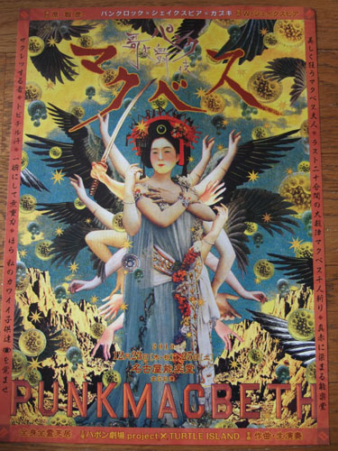 パンフレットによると、このハポン劇場プロジェクトの座長・演出 原 智彦という方、64歳だという。20年前にスーパー一座ロック歌舞伎というのをやっていたそうで、今回音楽担当であるバンド、タートルアイランド(豊田)との縁がありお見合いをして、それならば今度はパンク歌舞伎やってみちゃろうということになったという経緯らしい。坪内逍遥訳の昭和十年発行の本が参考本訳で、この歌舞伎をつくる台詞になっていった意味がなんとなくわかりました。