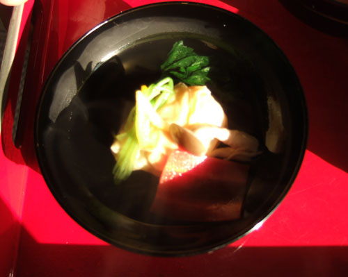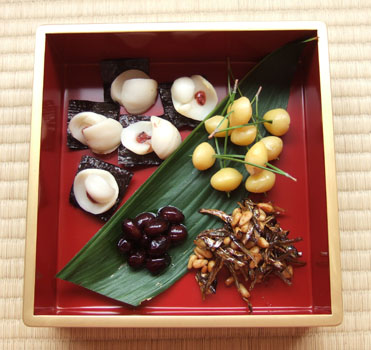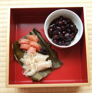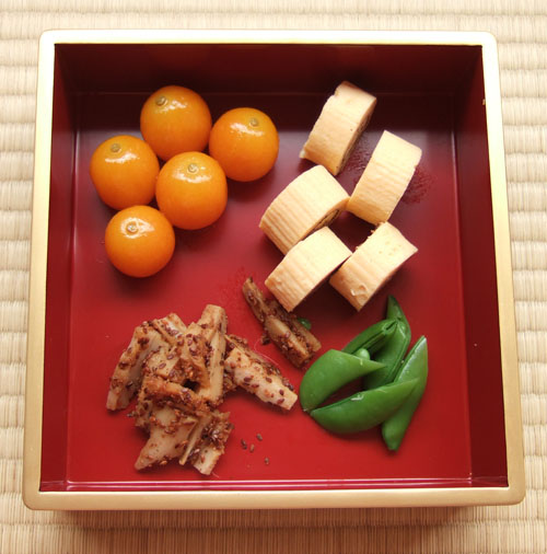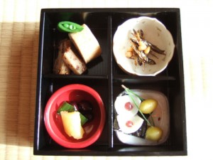 吸い物、八寸はおせち料理を松花堂風に少しずつ。このほとんどがW婦人の手づくりです。