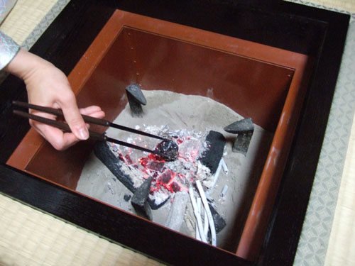 濃茶が終わった炭の状態。すっかり燃え尽きていました。