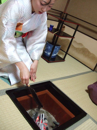 濃茶席のあと、後炭点前は年は若いがベテランのアキねぇさんにさらさら~っと炭を直していただきました。