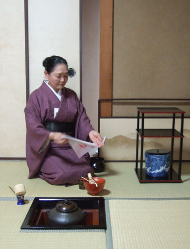 それで「大吉」をひいた人が最初に薄茶をたてる人となります。つぎに「吉」の人が順々に、最後「小吉」の人がおかたずけまでという順番です。