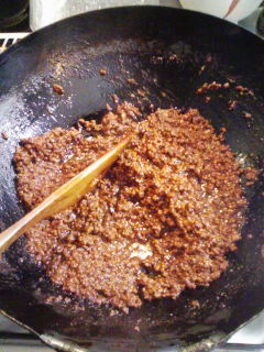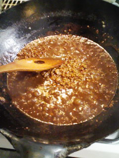3・中火で半分以上炒め煮つめかき混ぜ、油がピチピチしてきたらできあがり