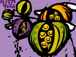 前回も参加していた柚木さんのグラフィックは前回のモノクロとは違い、超カラフル。いたずらっぽい胞子、花、みたいなのが顔になったり、ドクロに変化したり有機的な色のアニメーション。明るく楽しいイラストでした。可愛いかった。