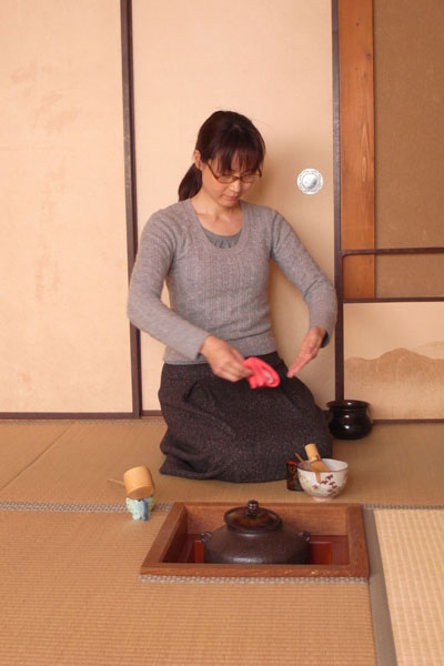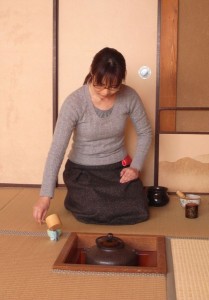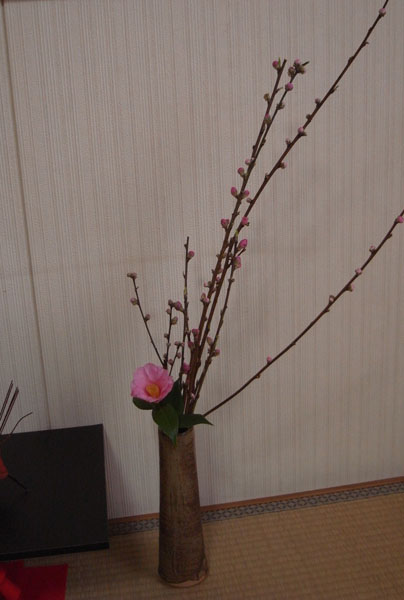 お菓子つくりながら、お花生けたり、お雛様かざったり、墨おこして釜かけて、皆で手分けして準備。
