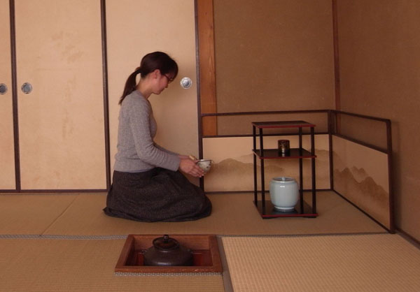 お雛様の時期に和菓子をつくったあとのミニ茶会の様子。