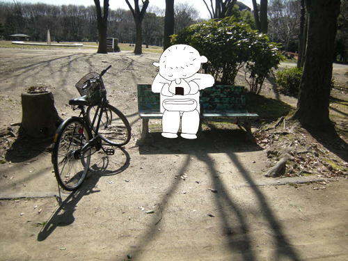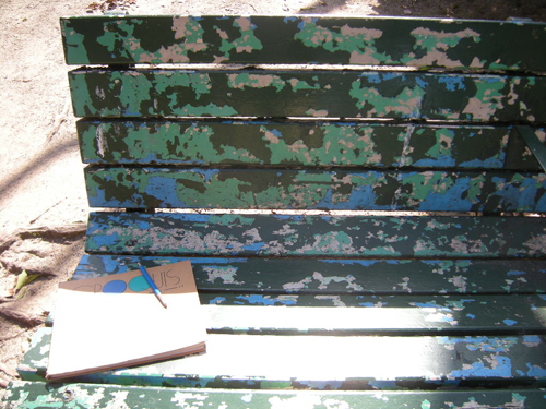 このベンチも何度か塗替えをしてNATO軍の迷彩塗装のようになっていて楽しくなります。こういうふうに天気がよくて、これからやっと暖かくなるなーという日は、何を見てもうれしくなります。