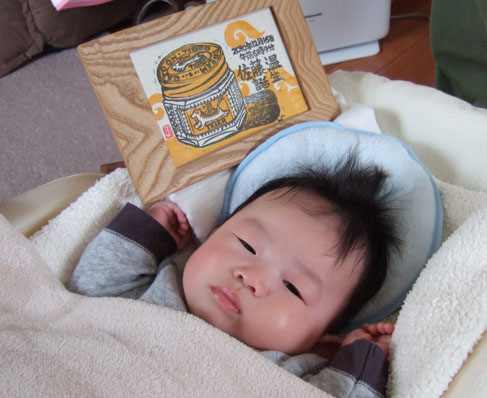 友人Sさんが昨年、念願の第一子が誕生しました。彼はM1号さんの版画が好きで結婚した時も版画を彫らせて