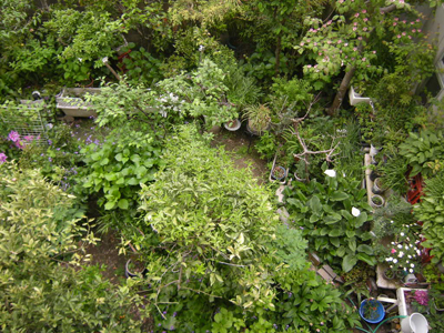 2階のベランダから見下ろすと大家さんが毎日手入れしている庭を鳥瞰で見る事ができます。