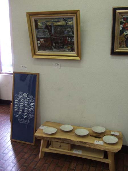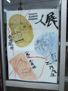 父油絵、兄陶工、弟木工と三種三色。三人がそれぞれに元気だからこそやれる展示。