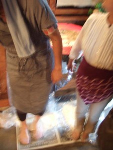 茶道部のカイユさんW夫人と三人で1kgを半分に分けて踏み踏みつくりました!