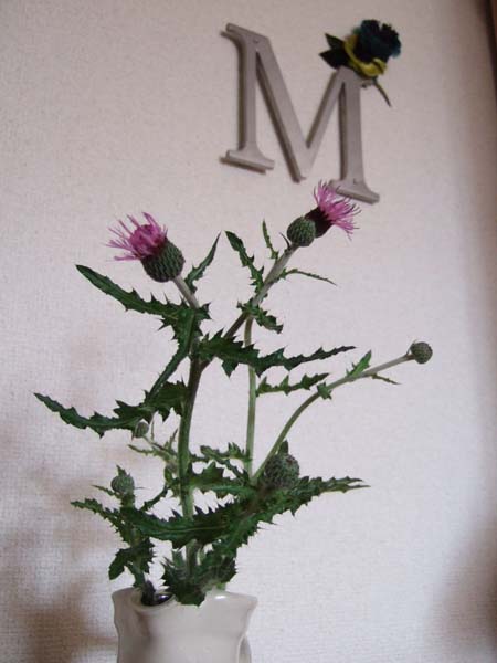 イガイガトゲトゲで痛いおもいもする、でも好きだから散歩の帰りに摘んで持って帰った。