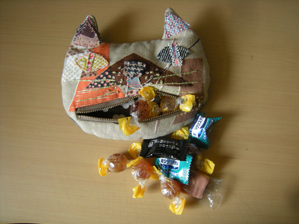 シッタエッタさん製作のこの猫ポーチに「あめちゃん」を入れてます。