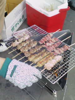 焼き場の助っ人「やっさんおじさん」がもくもくと焼いてくれる焼き鳥は美味しかったです。