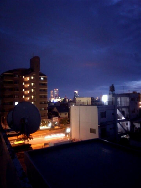 夜のベランダ。タワーズも名古屋城も見える屋上なんですよ~。