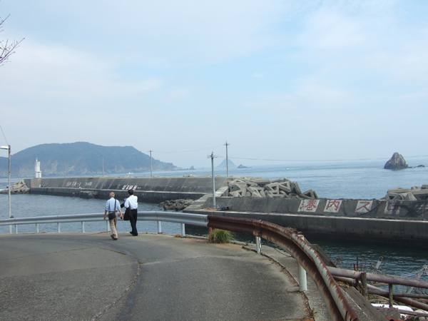 おいしい焼き魚定食を食べて、桃取へ車で送ってもらい、M1号生誕の地に立ちました。幼稚園前までしかいなかったのですが、駄菓子やの名前や、井戸の位置や、良く遊んだ岩浜の位置など、断片的な記憶がよみがえり、Sさんに記憶が正しいかを確認させてもらいました。