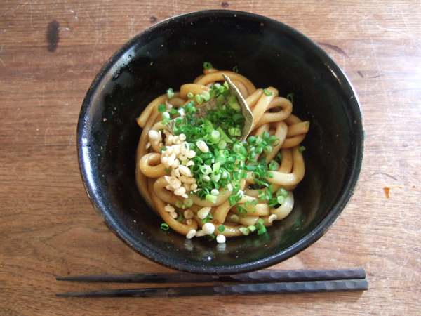卵で食べたい時は、月見にしないで湯がいたばかりのあつあつの麺にまず先に生卵をからめて(一見カルボナーラ風)そうしてから、おつゆをかけて頂きます。