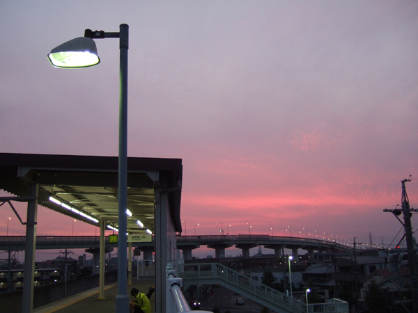 勝川で和菓子を買っていたらもう夕方で夕焼けが綺麗なのでした。