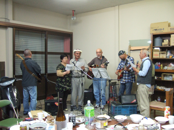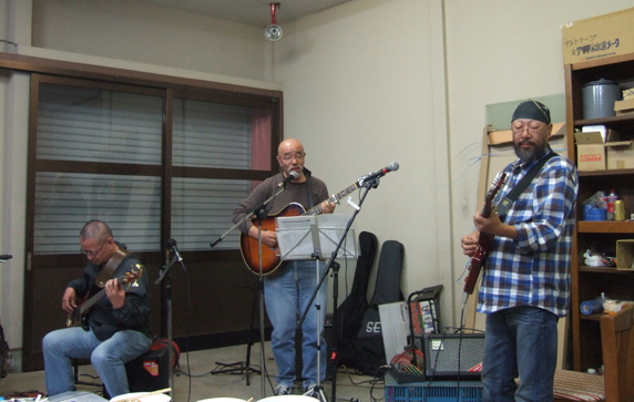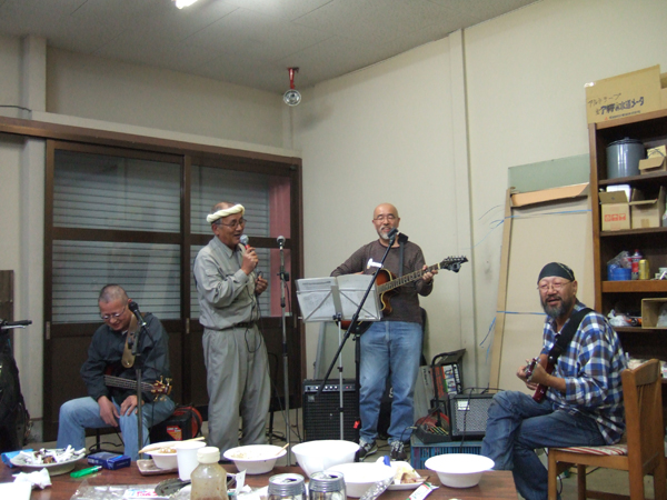 次の日に、とあるイベントでバンド演奏があるとのことで、大阪からも駆けつけたバンドメンバーさんたち、その名も「オッサンズ」というらしい。彼らはその練習もかねての演奏なのでした。