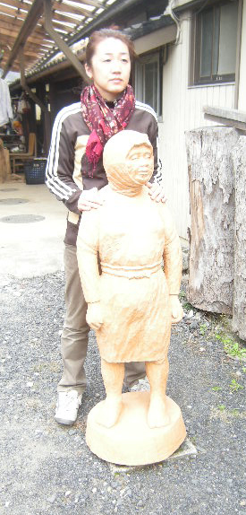 山川さんは富山県に旅行した時、欄間職人が合間に木彫りをしていたのを見たのがきっかけで独学で木彫りをするようになりました。テーマの海女一筋に木彫り作品はすでに100体以上あるのだそうだ。そして最近では日展でも入賞されたそうです。まさに継続は力なり。