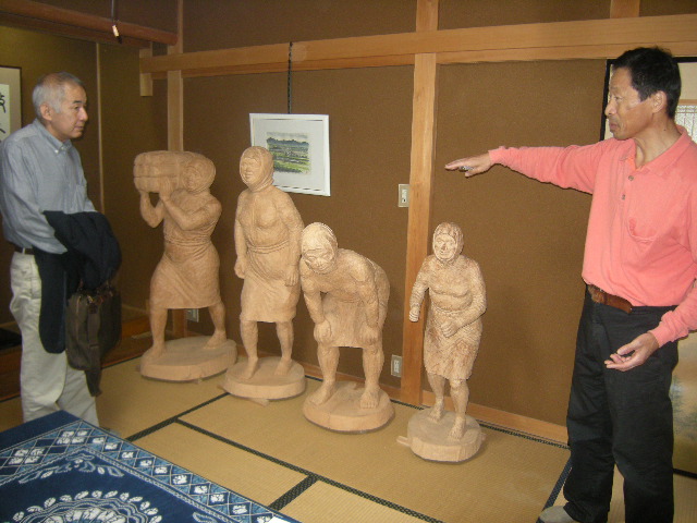 山川さんのご自宅がある志摩市の鵜方までいって木彫り作品を見せてもらい、たくさんの木彫り海女たちの歓迎をうけ(囲まれて)至福な時を過ごさせていただきました。