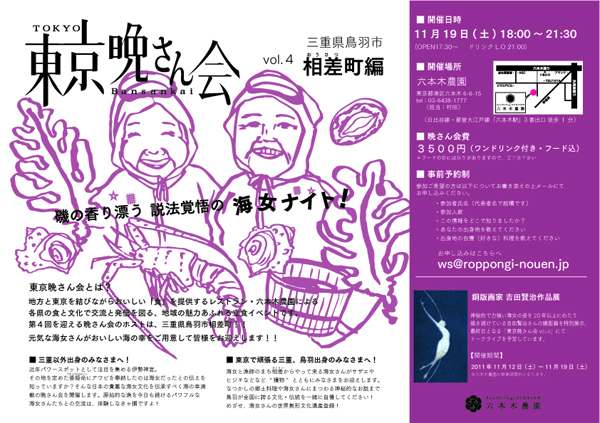 六本木農園 東京晩餐会のイベントに向けて打ち合わせや大道具・小道具のセレクトなどで鳥羽に通っています。
