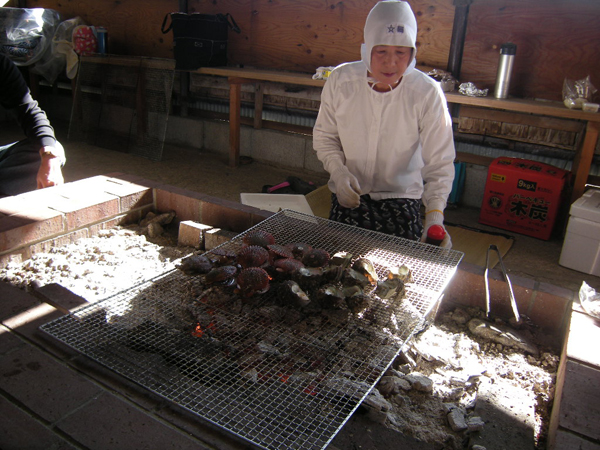その海女小屋の中で現役の海女さんたちがそこで魚貝を焼いてくれて、食事をしながら海女漁の歴史やいろんな事をお話をしてくださいました。
