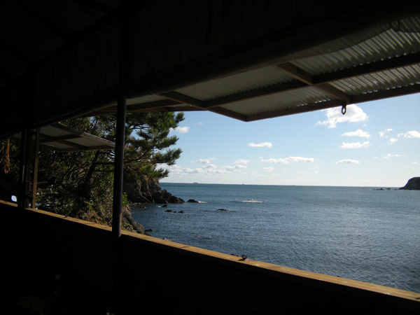 この「おぜこ海女小屋」の場所は、抜群のロケーションです。ここは車は入れない少し離れた高台にある小屋で、真下はすぐ海という景観がすばらしくいい所です。