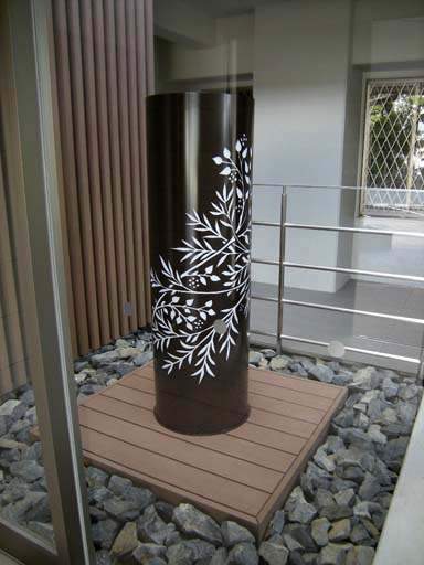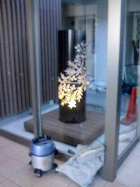 T建設さんのお仕事で、新築マンションの入り口に何か置かねばということで提案して出来上がった照明です。