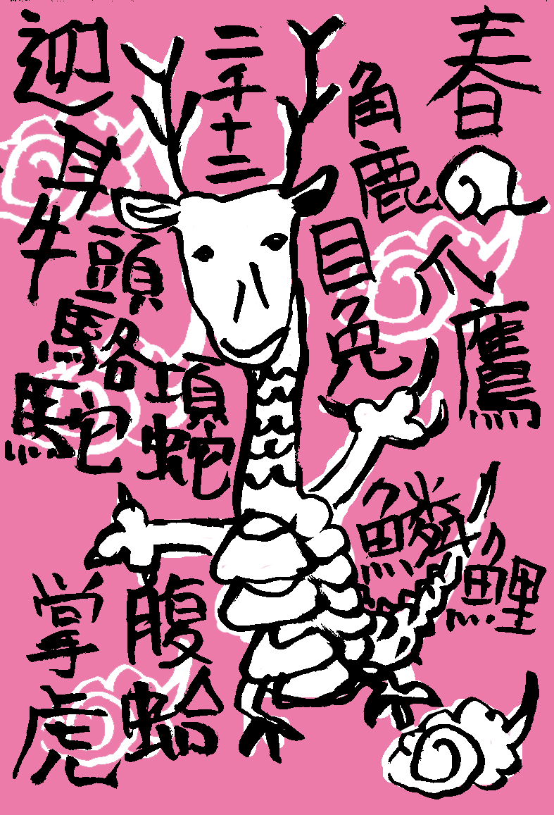龍は想像の動物なのでみんなが適当に想像して色々な形ができていて楽しいものです。何度も書いているとだんだん自分にしっくりする形ができてきて不思議な気がします。今年のHさんの年賀状に”自分の中の龍を大切に”みたいな事が書いてあってこれもちょっと引っかかる言葉でした。