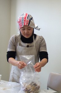 会議所では、鳥羽の旅館のおかみさんや商店の方たちが集まっている中にM2号も混じって、屠蘇の材料が調合されたものを小袋へつめる作業をしました。