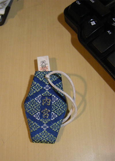 そういえば、伊勢神宮でお守りを買う時、サンプルをよく見ると、お守りの中のお札だけ売っています。袋は前の年のものを使ってもいいし、自分で作ってもおもしろいかも知れません。