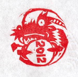 恒例の干支手拭をつつむときに使う消しゴムはんこです。ひとつあると何かと使えて便利そうです。こういうものを使ってM2号はお年玉袋を作って”楽しんでいる”と言っています。