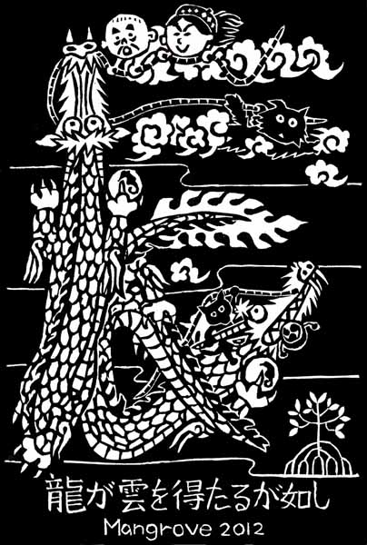 今年の干支手拭 (下絵の版画)