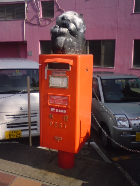 鳥羽水族館の前のポストにラッコが乗っていました。