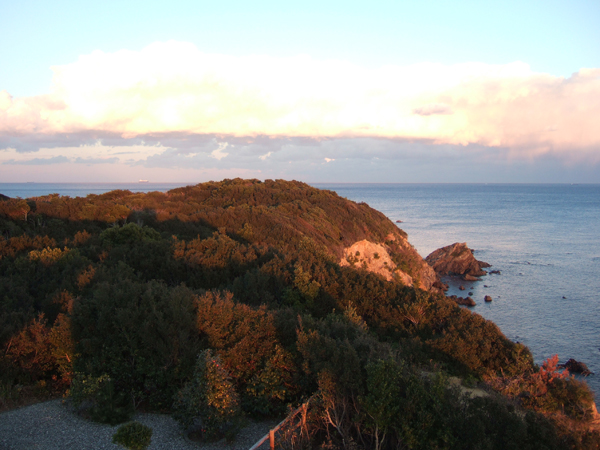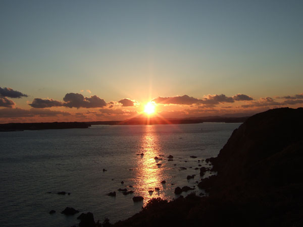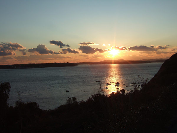 1月末に海女小屋体験したついでに、相差の海岸を散策して、菅崎公園へ日が沈みそうになる時間を見はからって行ってみました。