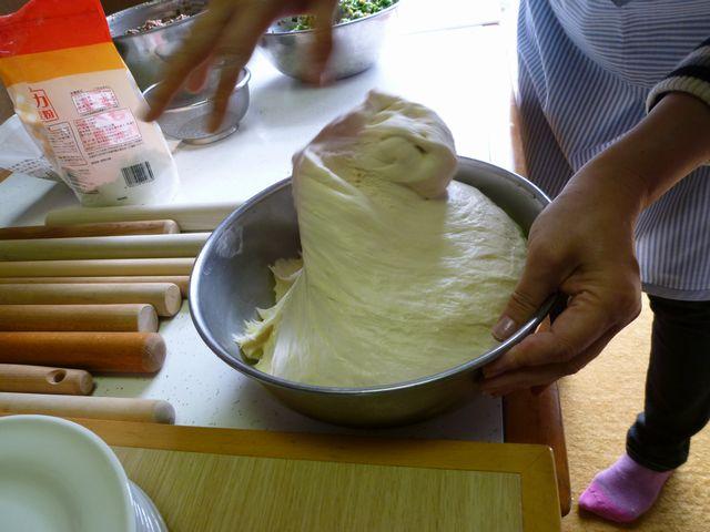 陳さん指導のもと、餃子を皮からつくり、麺棒でのばし、皆でわいわい作る作業は楽しかったです。