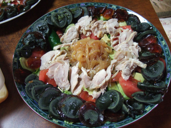 中華風サラダ(ピータン・くらげ・ゆで鶏のサラダ)