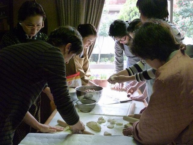この日は中国人の陳さんと鶴田母がたくさん料理をつくってくださり、餃子を皆でつくって食べました。