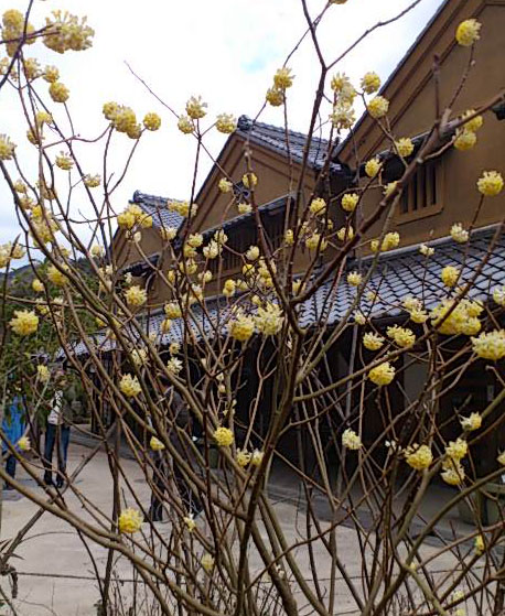職人館の前に紙の材料になる楮(みつまた)の花が咲いていました。かわいい花でした。