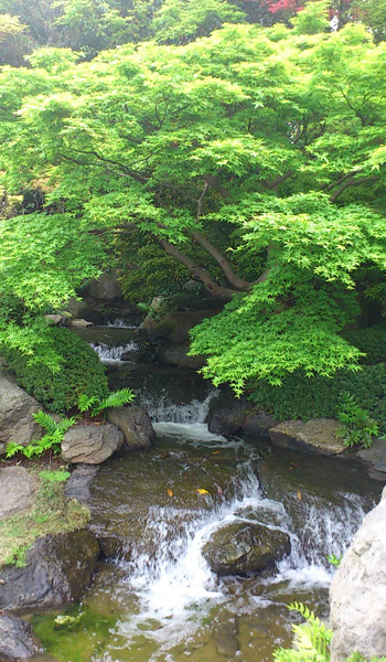 博多はやはり名古屋よりも気候が暖かいらしく、名古屋ではまだこれからという八重桜が、もう終盤の時期で、日本庭園では楓の青々とした新緑がひときわ目立って綺麗なのでした。