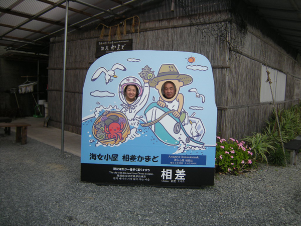 鳥羽の相差町で海女小屋体験に行ったら、是非”ご夫婦”で記念写真を撮ってください。(相差かまど側)