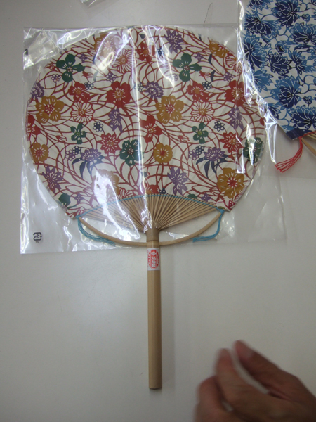 型染めの和紙の団扇も素敵。浴衣に合わせて持ちたい感じです。
