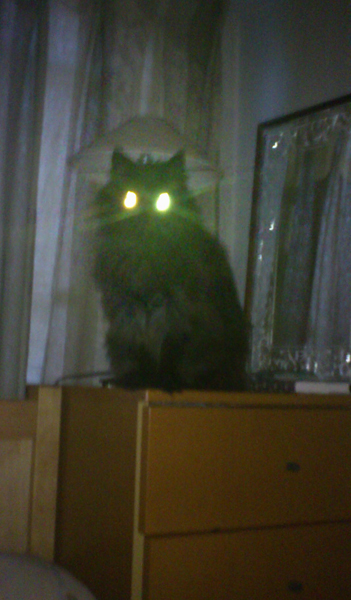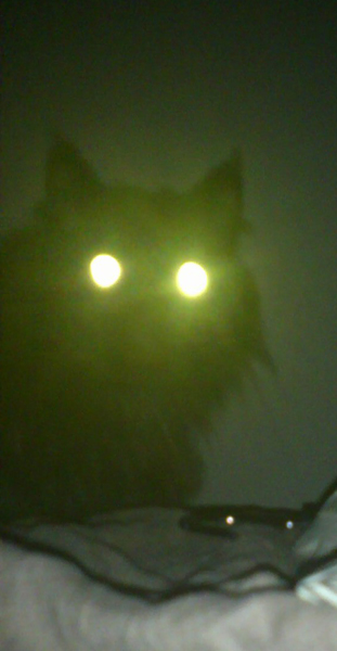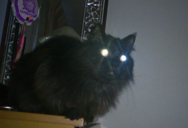 暗闇の中で、携帯のライトを点灯させて撮影すると、M3号の目が光って写ります。水晶体が大きい眼球なんでしょうか?