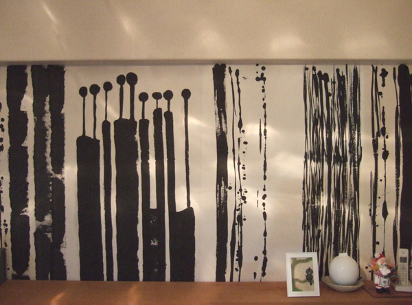 李恵アートの壁面 この墨絵のパワーに圧巻!