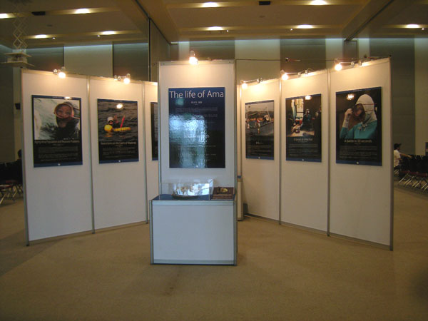 イベント会場は、海女に関するシンポジウム、海女に関する映像を見せるシアター、海女に関する情報を提供する展示の3つのゾーンによって構成されています。