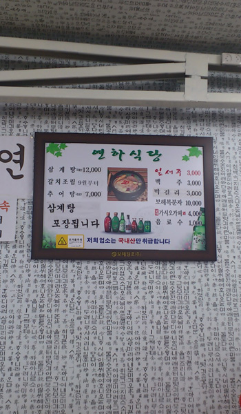 暖かいスープですがここでは夏に食すのが一般的で、町にはサムゲタン専門店が所々にあるみたいでした。