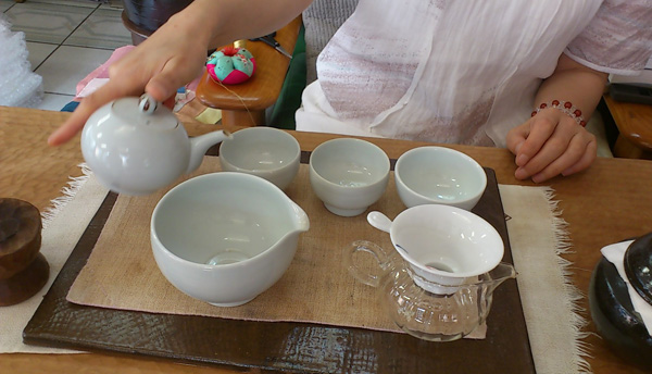 ここの店主が宝城(ボソン)地区の緑茶というのを韓国式のおてまえらしき方法で、私たちに入れてくださいました。
