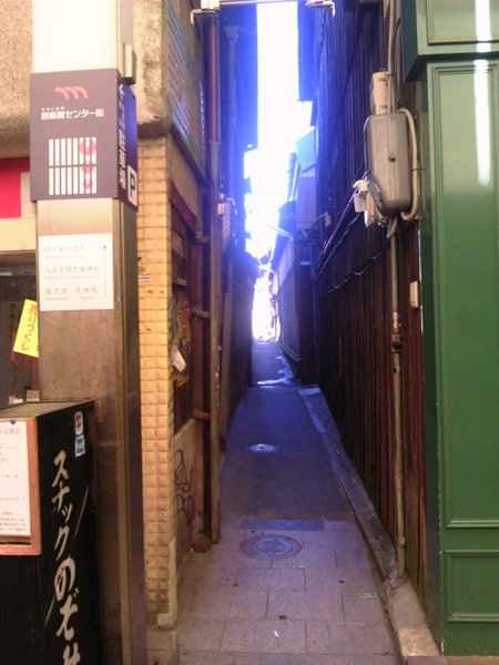 アーケードの店と店の間の1.2メートルくらいの巾の路地に ↑猿沢の池 という誘導サインがついていました。この路地も魅力です。